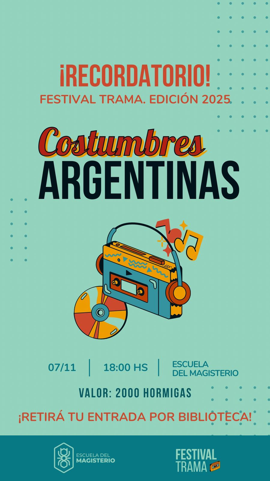 La Escuela del Magisterio presentará una nueva edición del Festival TRAMA bajo el título “Costumbres argentinas”. La propuesta integrará música, danza y teatro con la participación de estudiantes y docentes de distintos cursos.